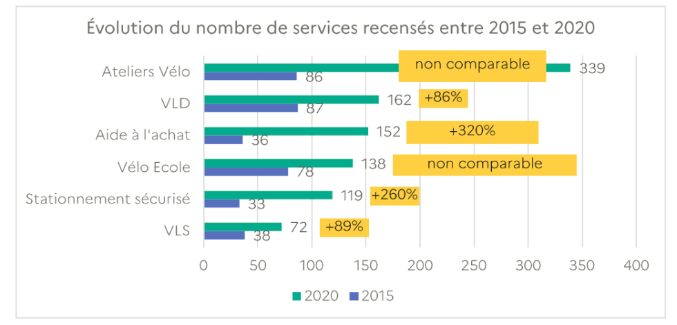 Les aides à l’achat de vélos proposées par les collectivités représentent le dispositif en faveur du développement de la pratique qui s’est le plus développé entre 2015 et 2020.