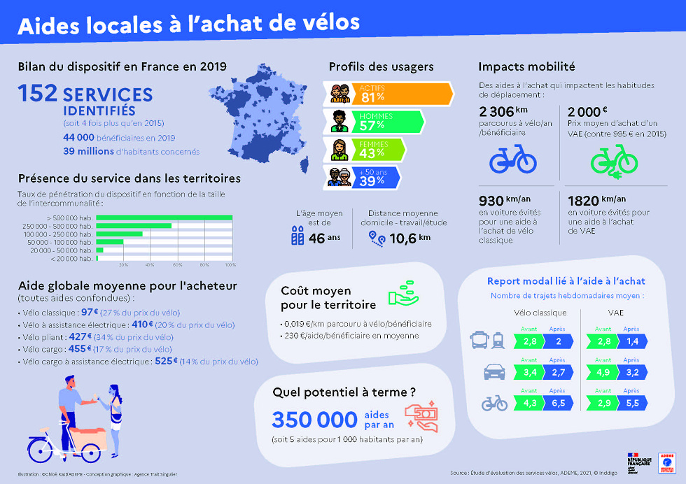 - 152 dispositifs locaux d’aide à l’achat de vélos ont été recensés par l’étude.