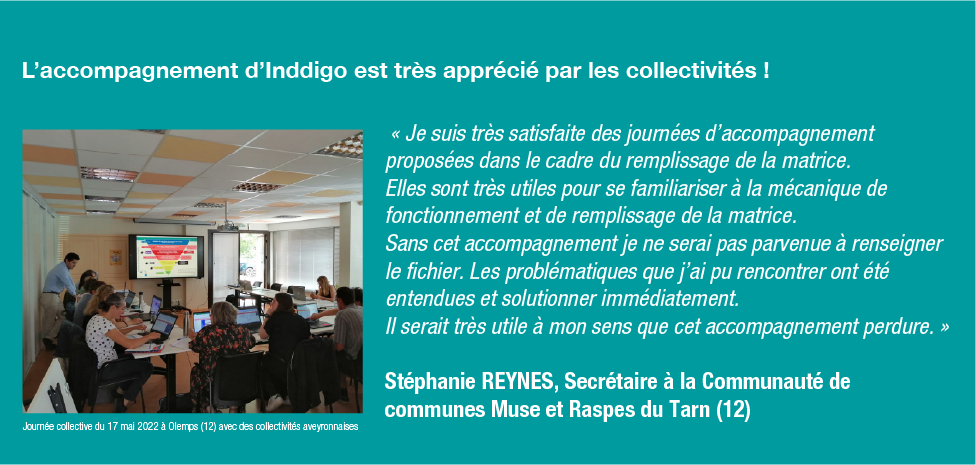 Le rôle d’Inddigo comprend l’accompagnement des collectivités au remplissage de la matrice et plus encore
