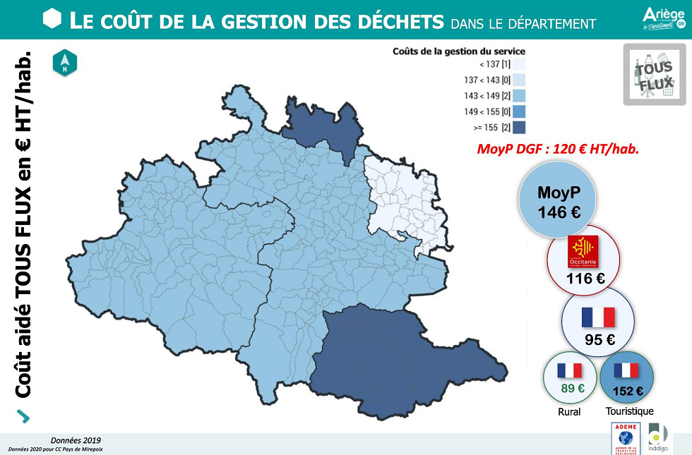 Extrait de la restitution des coûts de gestion des déchets en Ariège, sur la base des matrices de 2019.