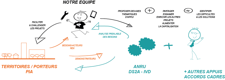 - challenger les territoires, par l’animation d’atelier(s) et un encadrement méthodologique de l’expérimentation ;