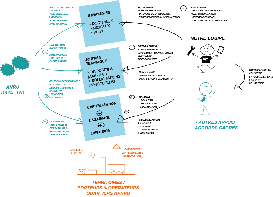 - favoriser la capitalisation, la diffusion et l’essaimage auprès des participants, des acteurs du renouvellement urbain et de l’ANRU.