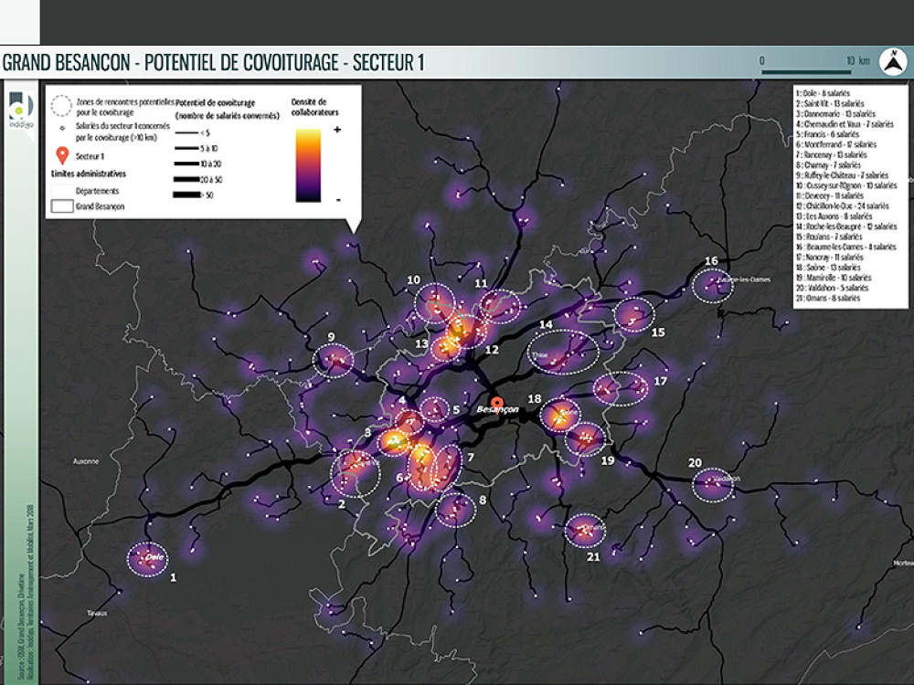 • Carte de potentiel covoiturage - Chaque point représente le lieu d’habitation d’un agent